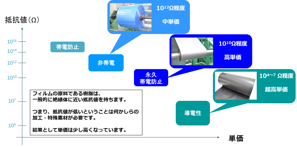 帯電防止フィルム・導電性フィルムの違いに関する解説はこちら>>>