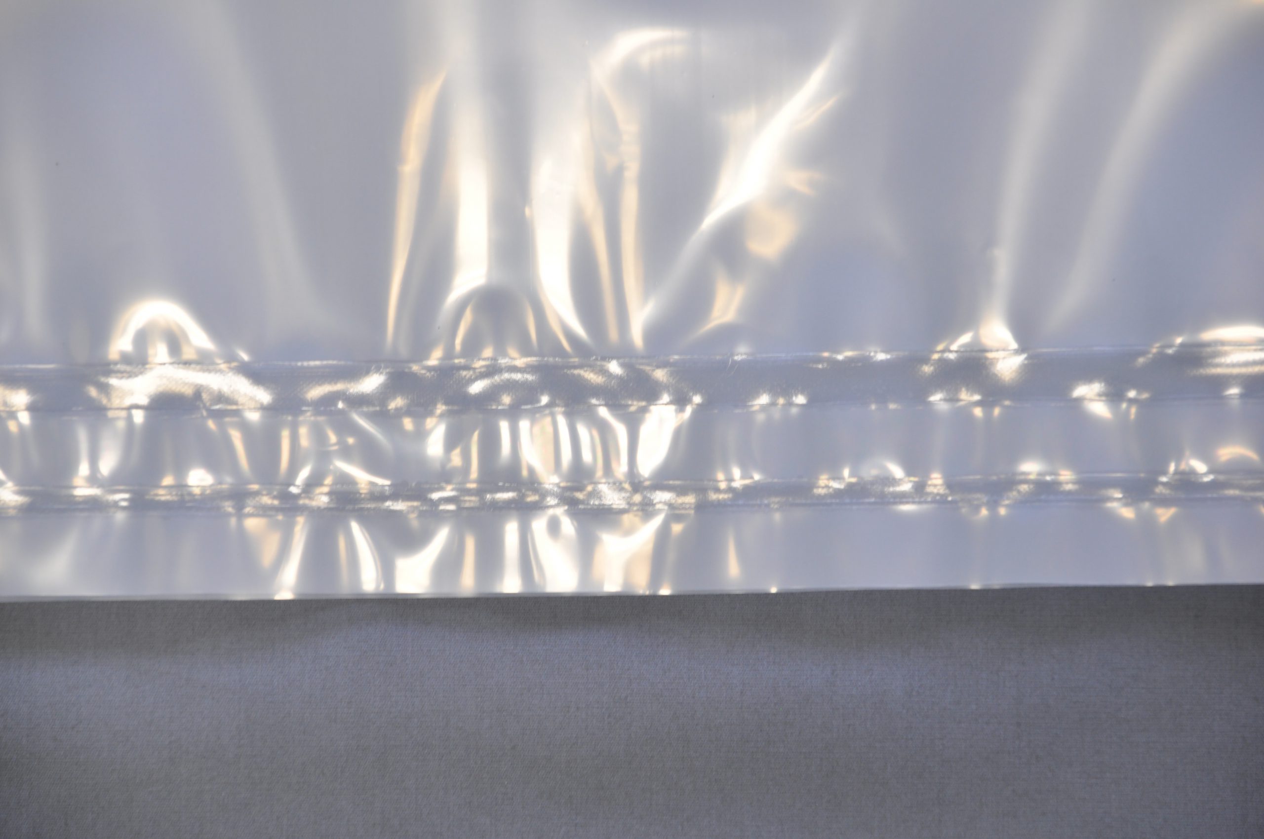 3m幅のインフレ機を用いた、特大サイズの内袋・カバー袋です。サイドシール加工を採用することで、原反の幅を最大限に活用した特大袋の成形しました。