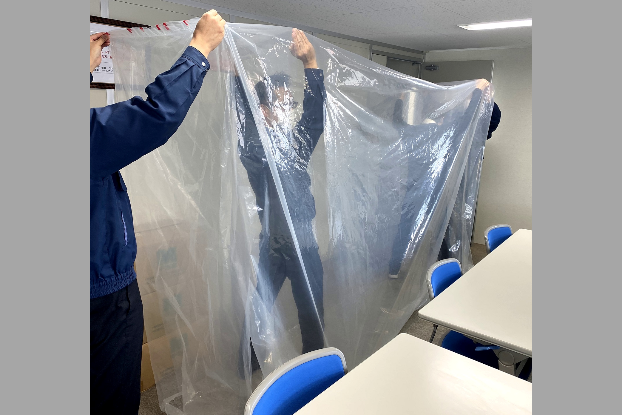 こちらは、工場内で収納されている製品を埃や塵などから保護…