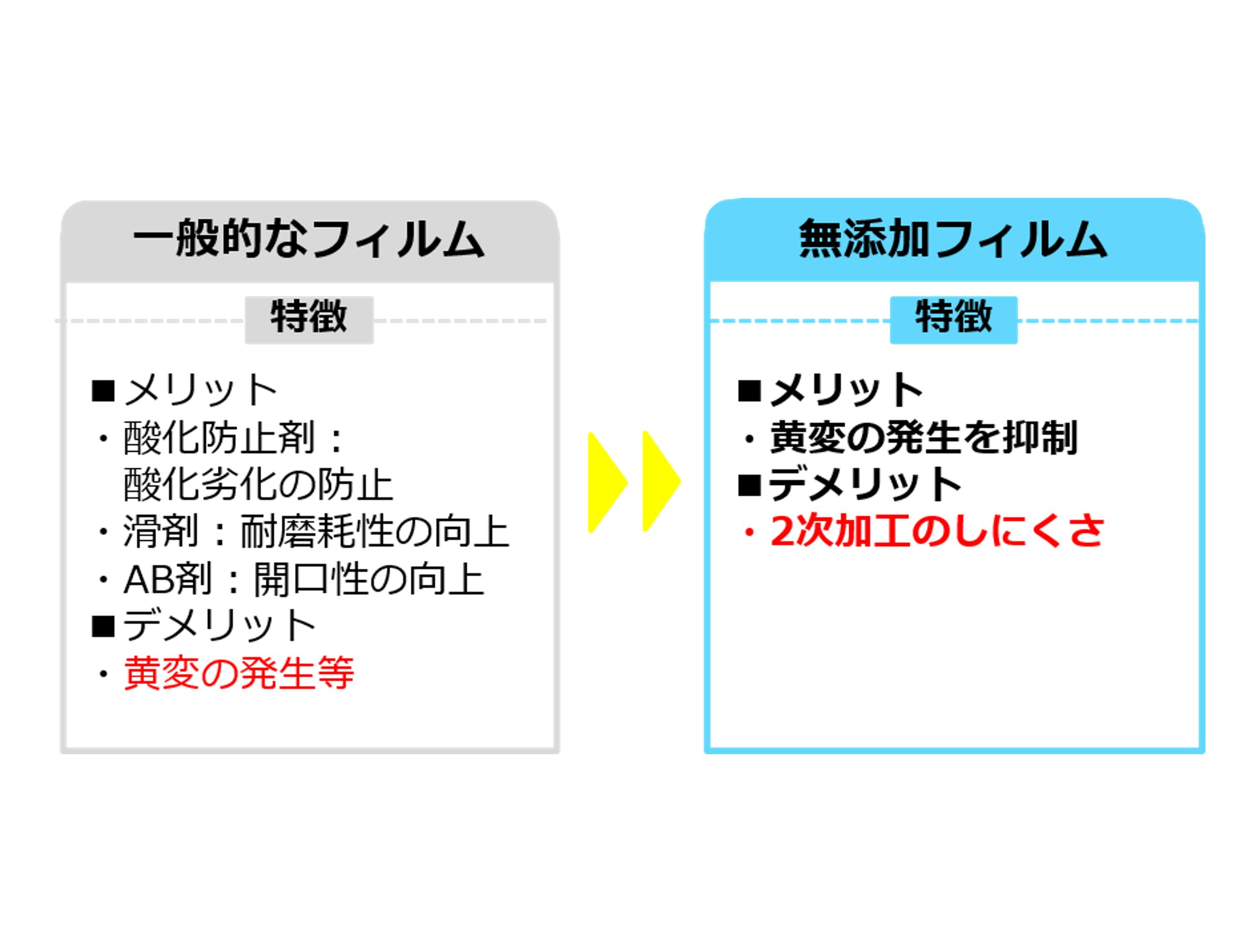 無添加フィルムとはフィルム製造をする際に一般的に使用される添加剤が含まれていないフィルムです。